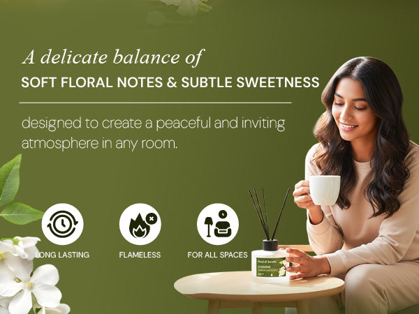 A bloom that lingers. The Jasmine Reed Diffuser turns your space into something softer, slower, more scented.