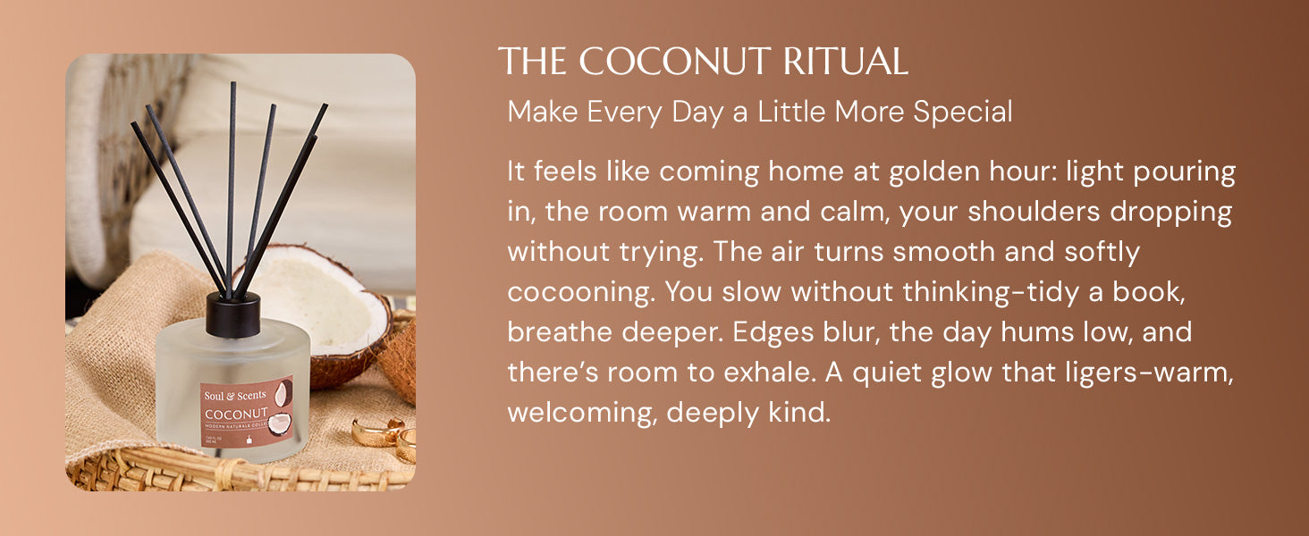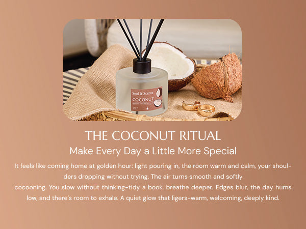 There’s a certain kind of quiet that comes with warm light and the scent of coconut. It’s grounding, nostalgic, and soft all at once. The Coconut Reed Diffuser captures that mood—subtle sweetness balanced with a sense of slow, sunlit ease.