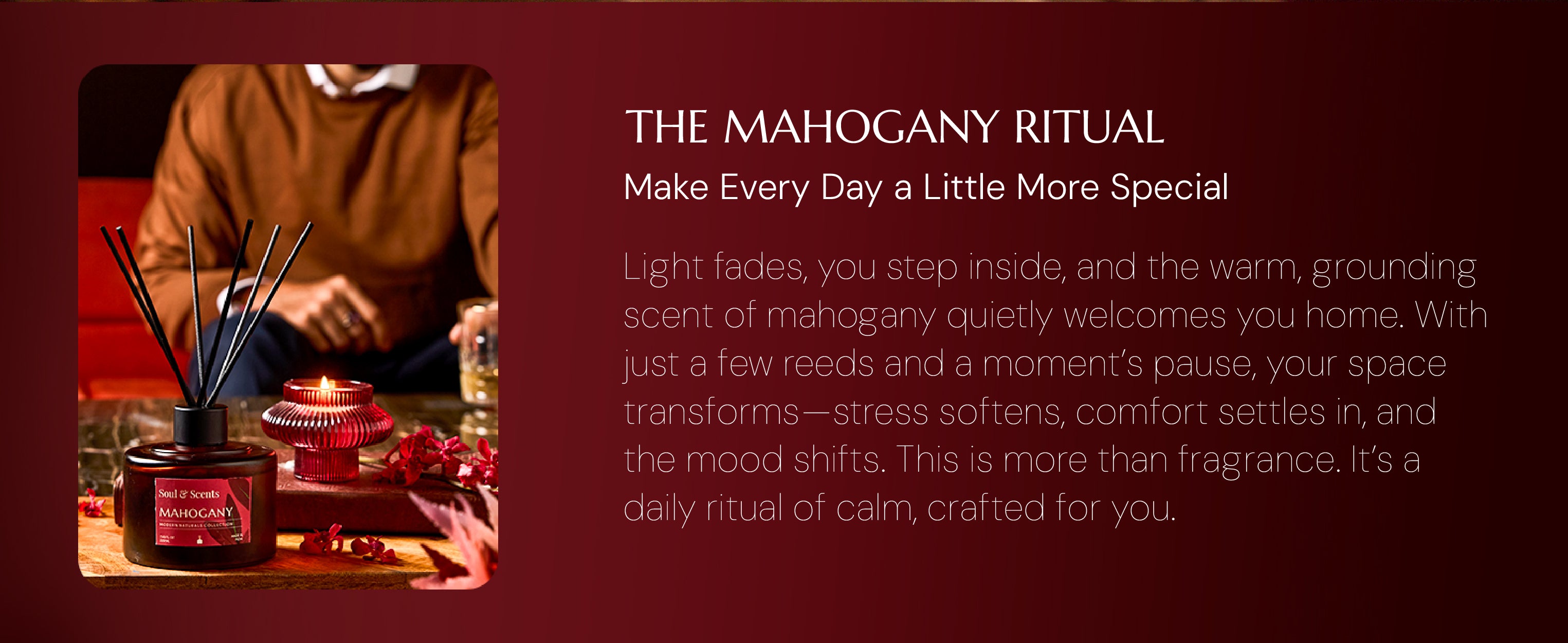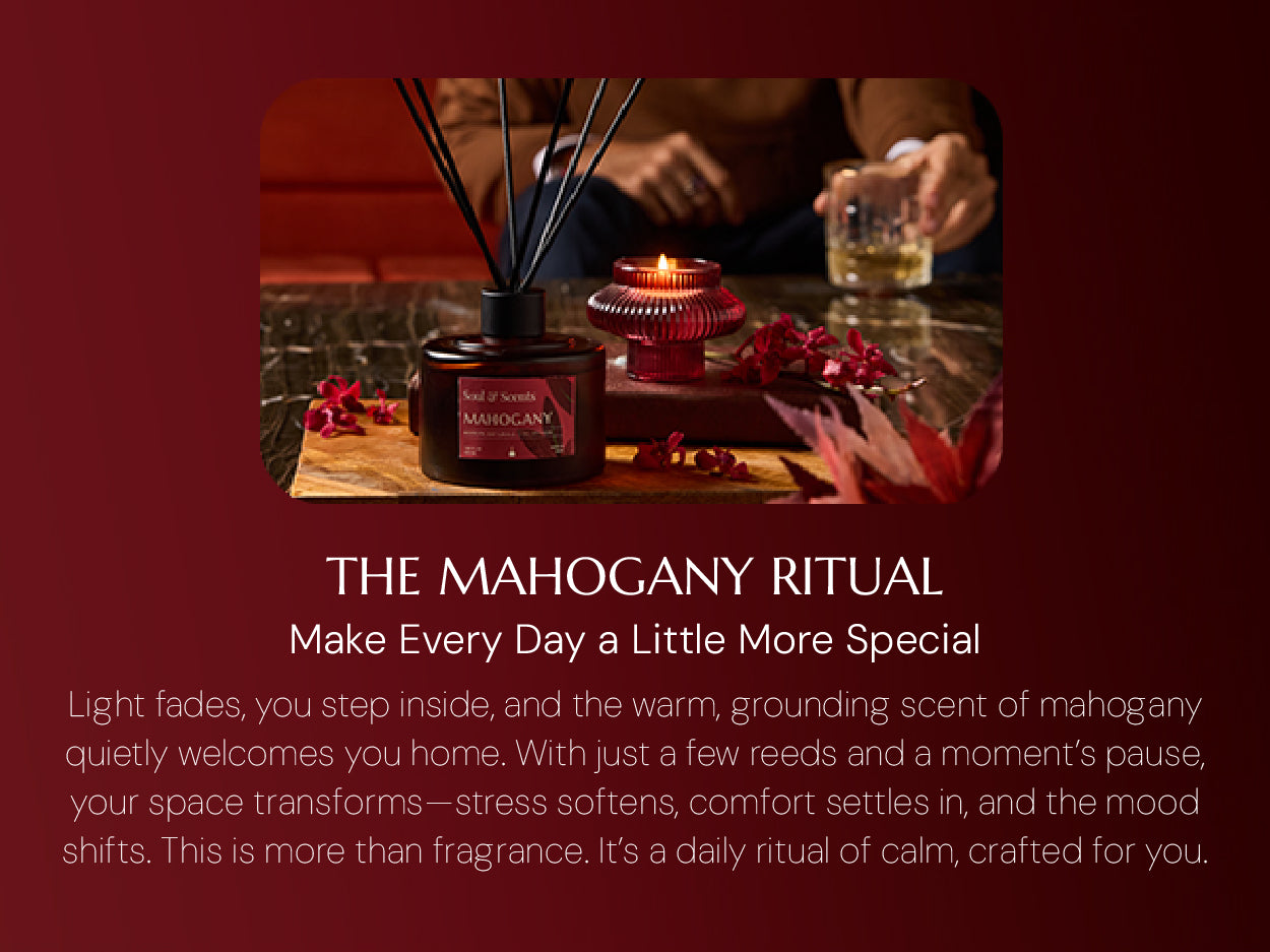Experience the warm, comforting scent of mahogany with notes of fresh apples, caramel, and a touch of spice. It blends mahogany, coconut, and vanilla for a cozy, relaxing atmosphere that adds a hint of sophistication to any space.