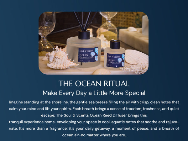 Ocean captures the feeling of standing at the shore—salt in the air, waves rolling in, sky stretching wide.