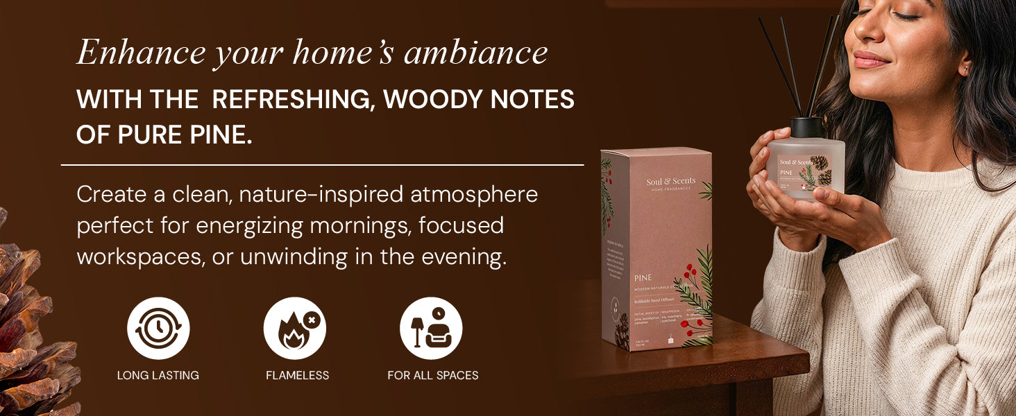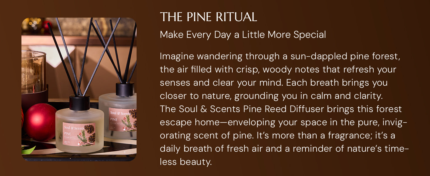 Pine brings the outside in—fresh, green, and slightly nostalgic. A clean and woodsy scent that clears the air and your thoughts.