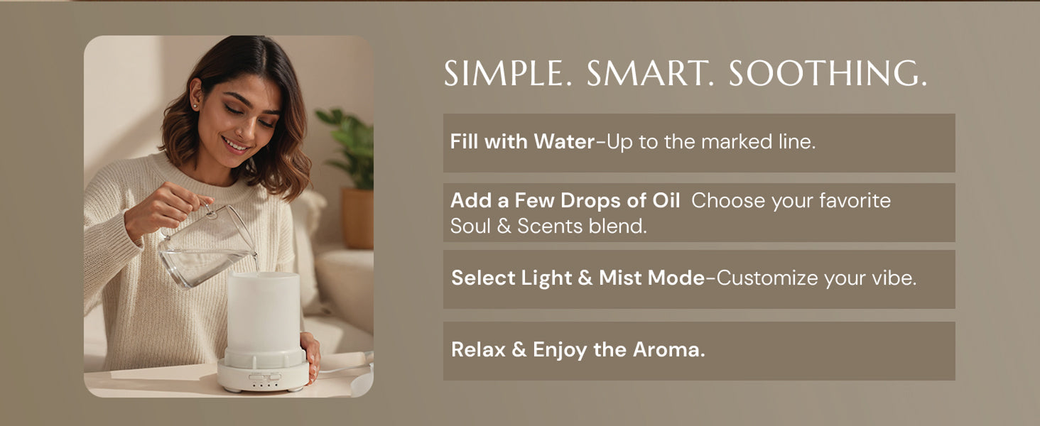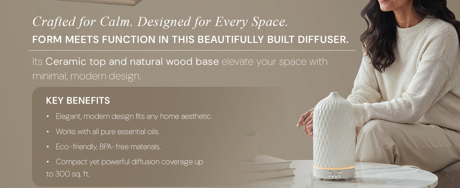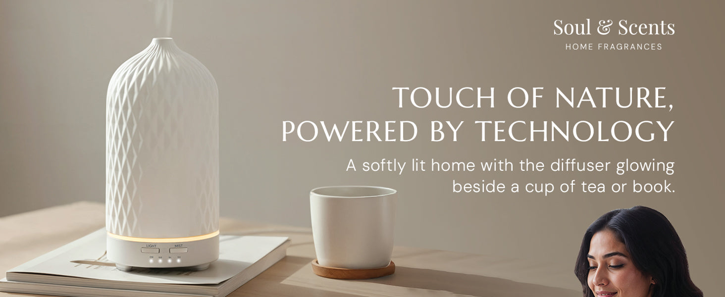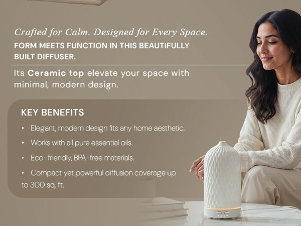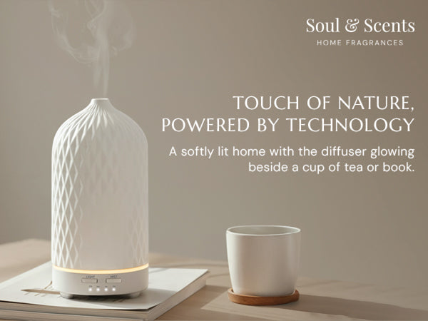 The Soul and Scents Ceramic Essential Oil Diffuser combines aromatherapy, humidification, and vaporizing in one elegant device, creating a soothing and refreshing atmosphere for your home or office. With its large 500 ml capacity, it provides hours of continuous mist to keep your space fragrant and comfortable, while the built-in timer and auto shut-off feature ensure safe and hassle-free use. Simply add a few drops of your favorite essential oils to relieve stress, improve sleep, and uplift your mood, making it the perfect companion for relaxation, work, meditation, or daily wellness.