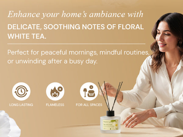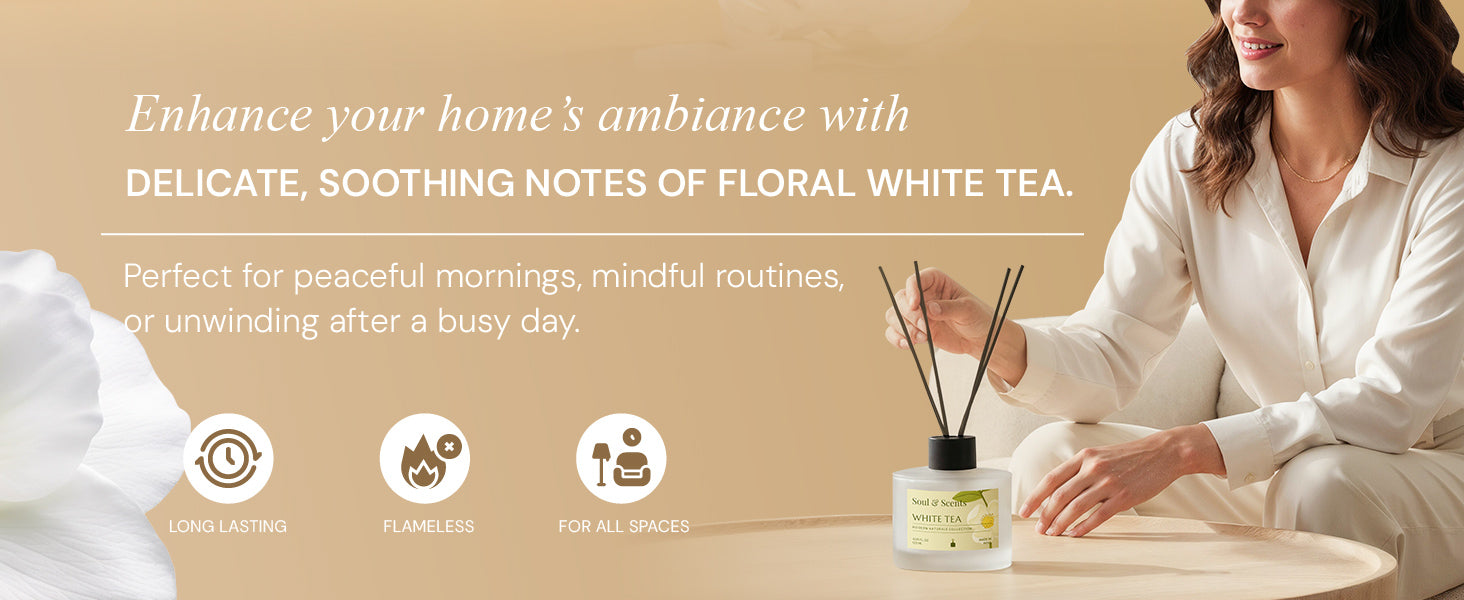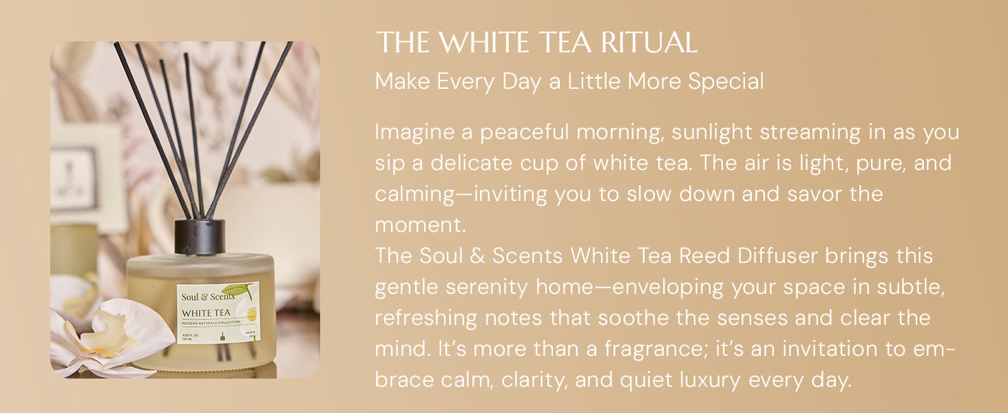 Ideal for bedrooms, baths, or any space meant for pause, the White Tea Reed Diffuser is a quiet ritual—thoughtful, graceful, and made for the everyday.